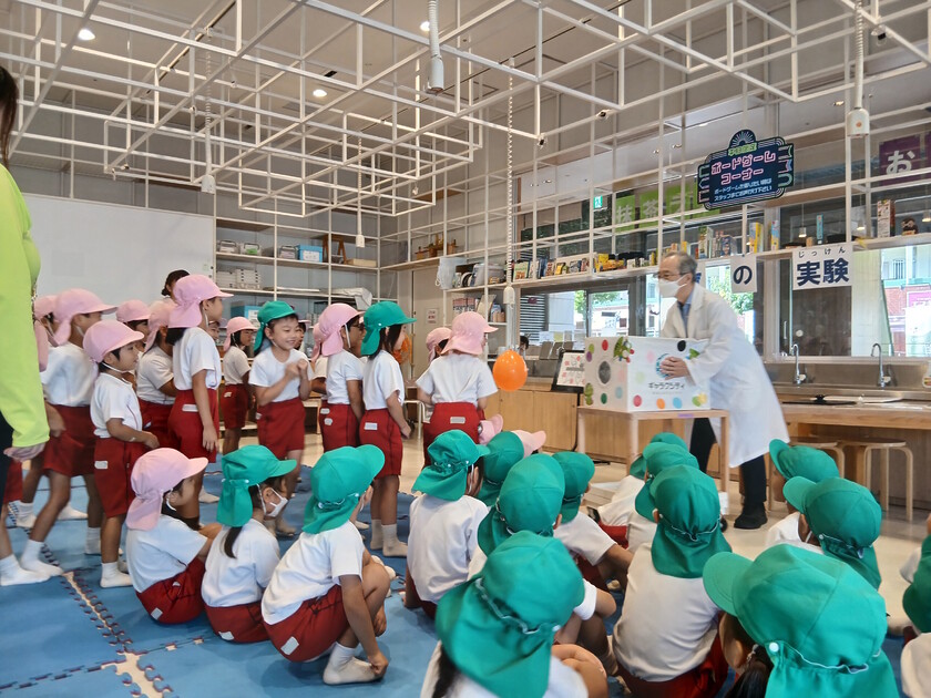 到着して一番にサイエンスショーでは空気の実験を見ました!