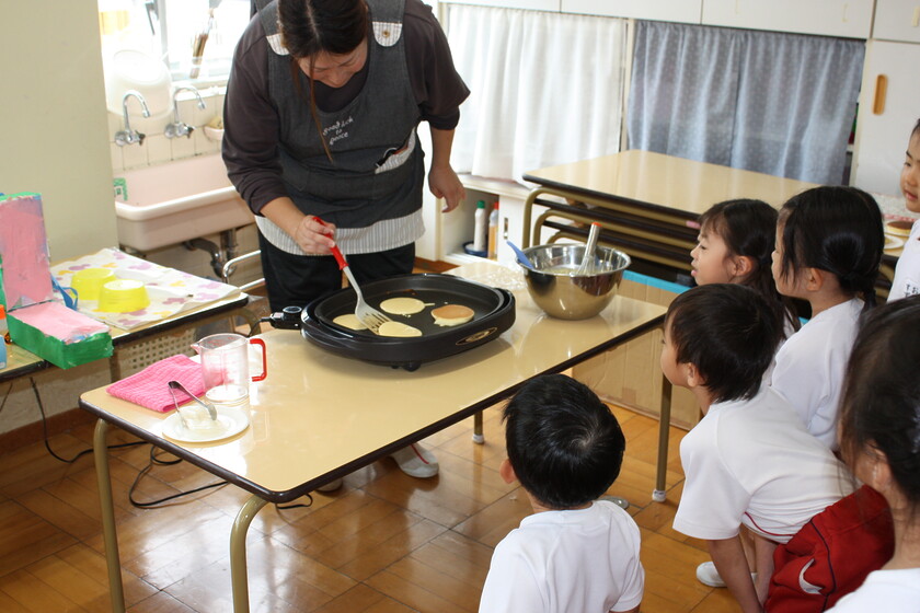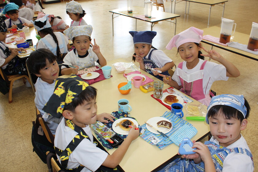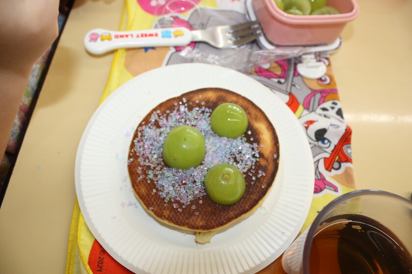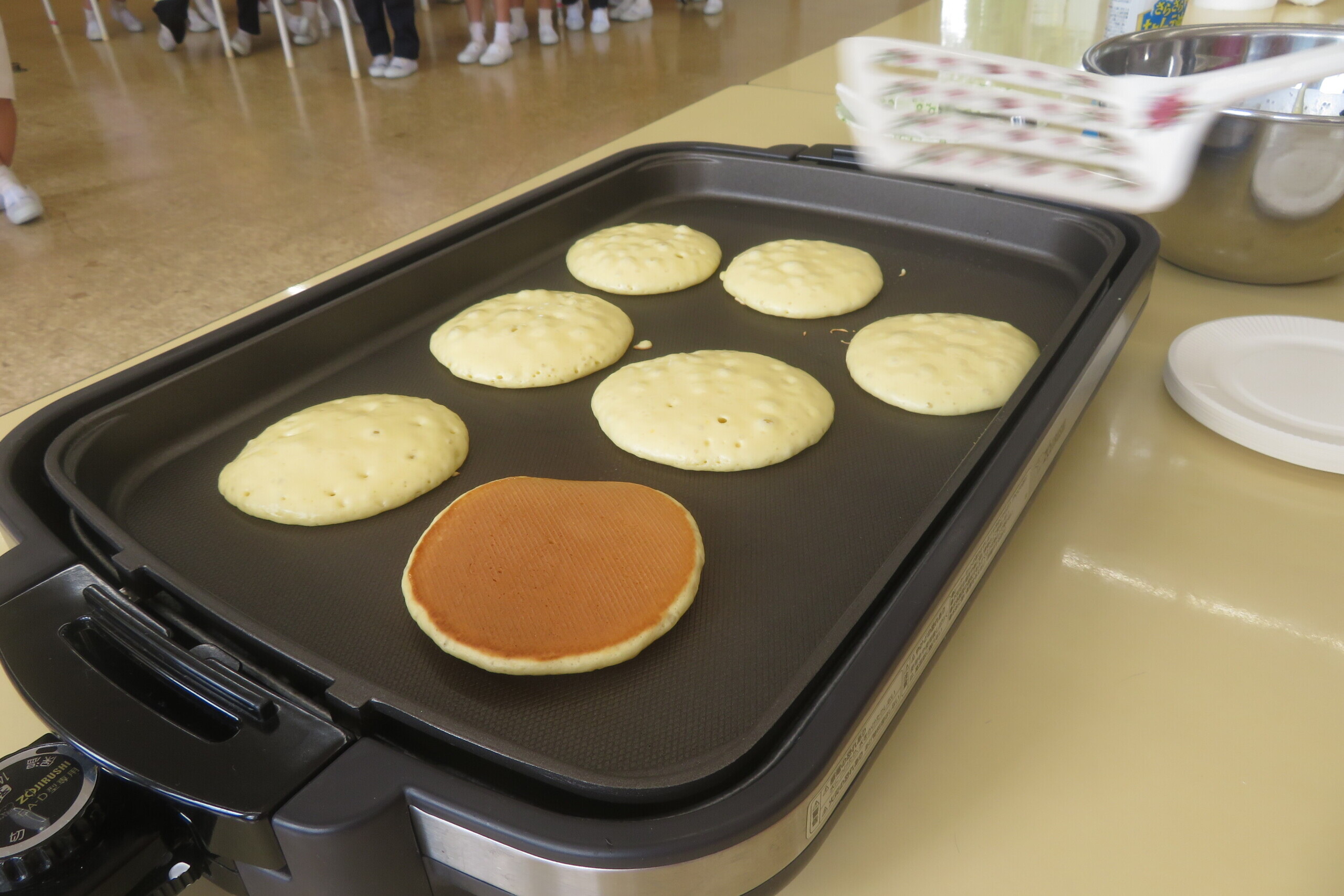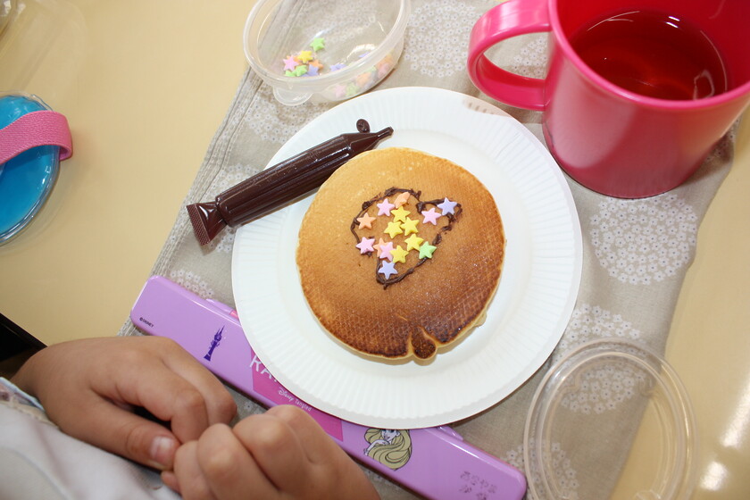 焼けたパンケーキに持参したトッピングをのせてみんなでいただきました!