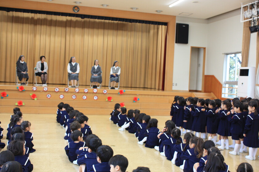 歓迎会では各学年が聖歌を歌い、全園児で大好きな「まじめ忍者」を踊りました!
