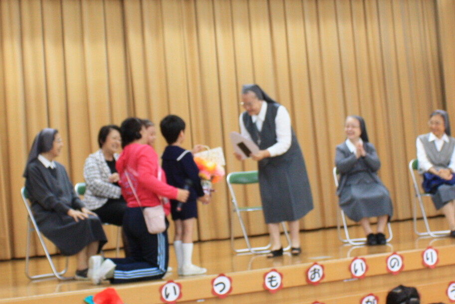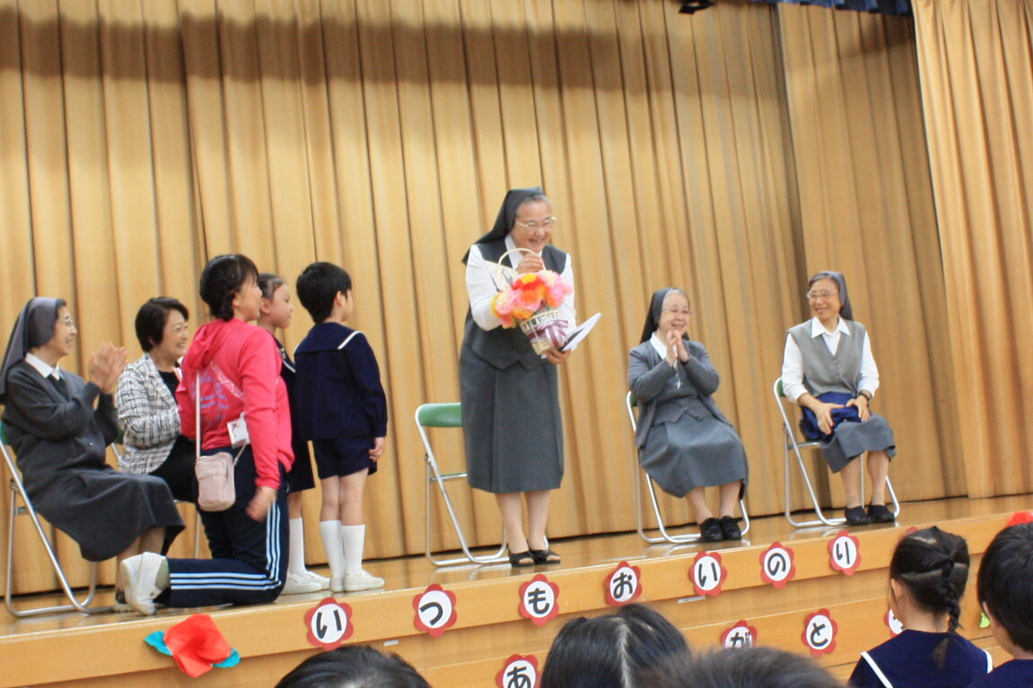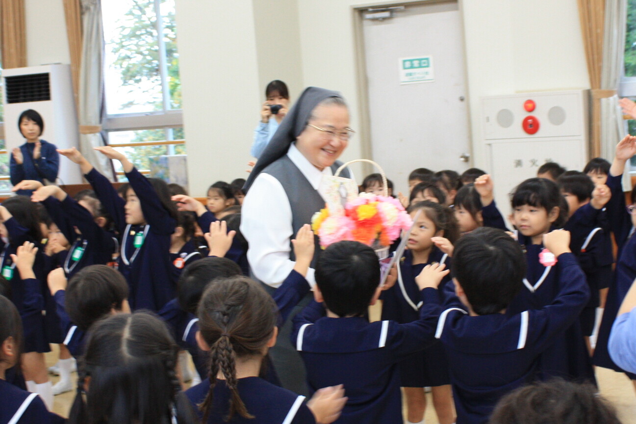 サレジアンシスターズ管区長宮脇道子シスターが幼稚園にいらっしゃり、子どもたち・職員一同でお迎えいたしました。