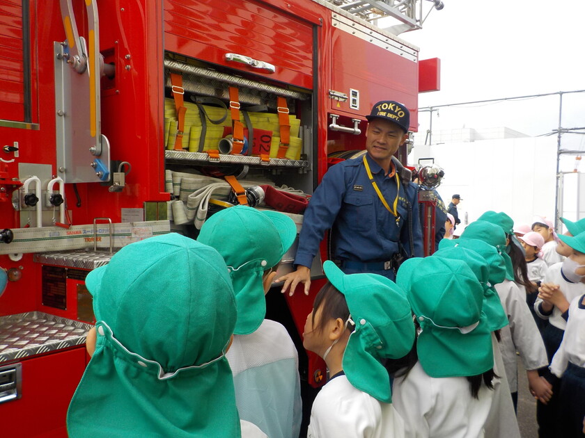 本物の道具などを見て、気になることを質問すると消防署の方々が丁寧に答えてくださり、大喜びの子どもたちでした!