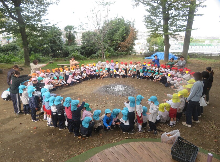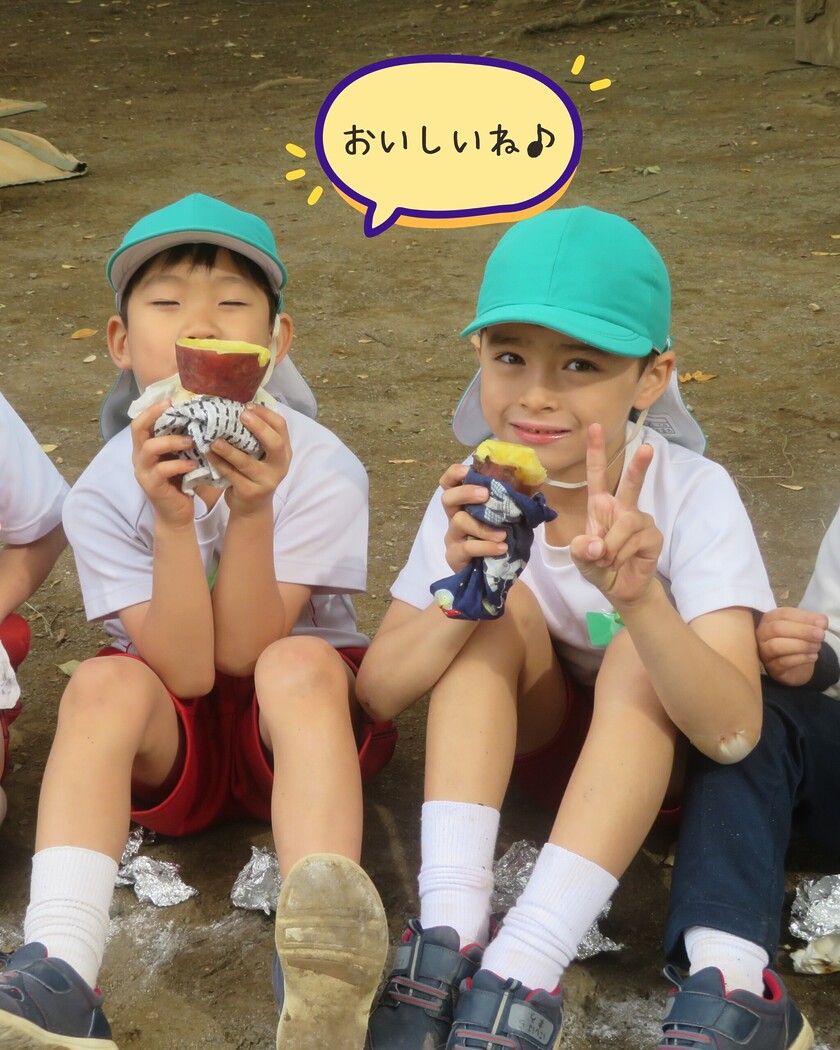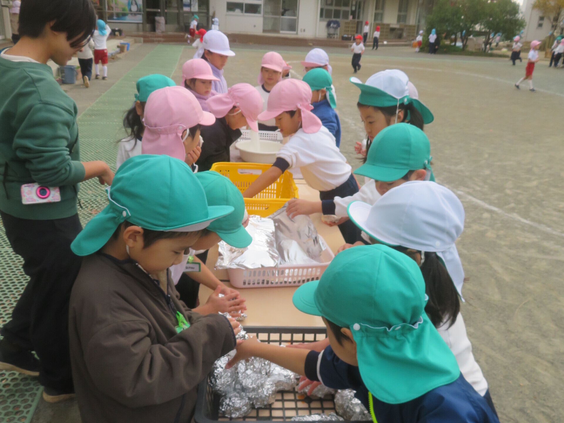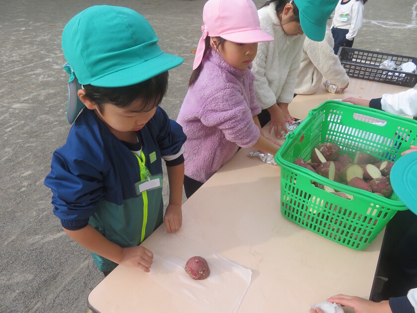 年長組は畑で育てたお芋を自分たちでアルミホイルに包んで準備!