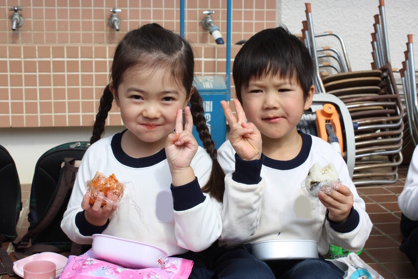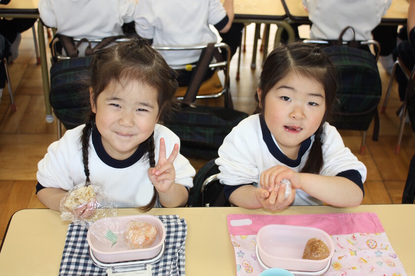天気も良かったので、テラスでおにぎりをいただいたクラスもありました!