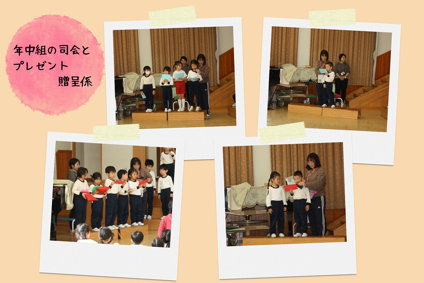 各学年の招待、プレゼント準備、会の進行を年中組が行いました!