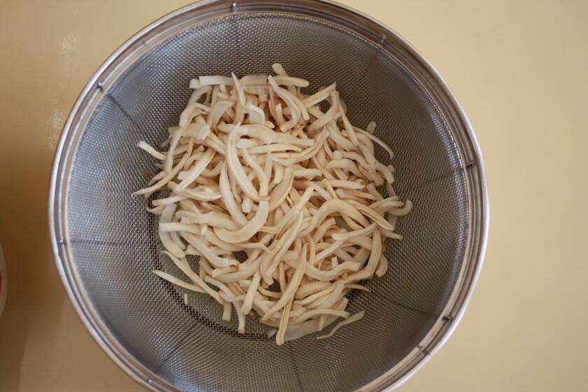 まず大根は細く切って乾かし切り干し大根を作りました。