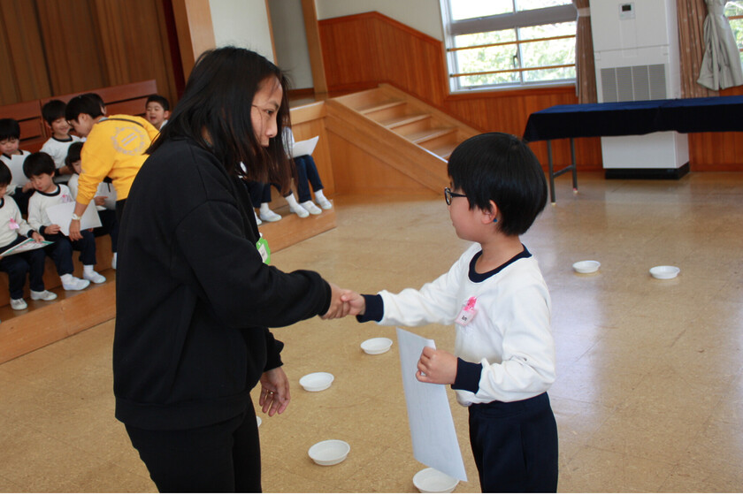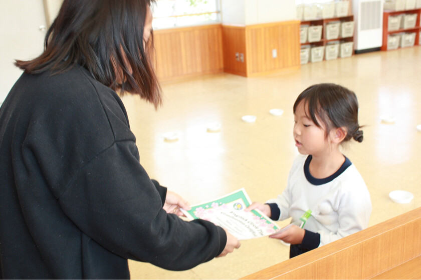 今日は年長組で英語のサークルタイムの卒園セレモニーを行いました!