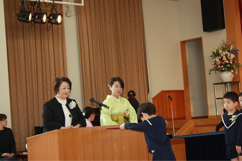 園長先生から修了証書を受け取り、学年みんなで心を込めて感謝の言葉や歌を歌い、素晴らしい卒園式になりました!